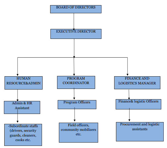The organization is run by competent and skilled staff under the stewardship of a Board of Directors. The Board has a membership of seven individuals who meet annually to plan, design, strategize, innovate, organize and follow up on activities implementation as well as identify achievements and challenges to ascertain ways forward for the success of the beneficiaries.